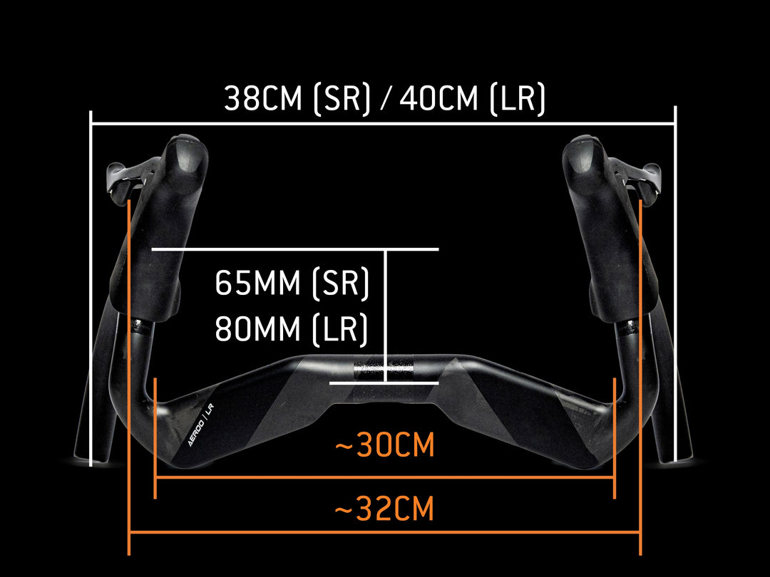 Two versions are available, the Long Reach (LR) and Short Reach (SR). Both feature narrower 30cm tops, but differ in reach (65mm - SR, 80mm - LR) and width at drops (38cm SR, 40cm - LR).